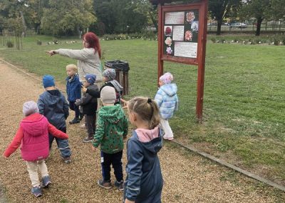 Az óvodát körülvevő park csodálatos fái és növényei között lehet barangolni, felfedezni a környezeti szépségeket, gyűjtögetni, megfigyelni a természet változásait, az itt élő állatok életét.